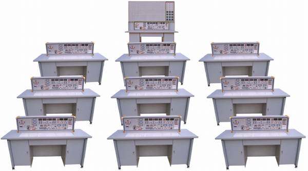 实验台具有较完善的安全保护措施,较齐全的功能。实验操作桌中央配有通用电路插扳,电路插板注塑而成,表面均布有九孔成一组相互联通的插孔,元件盒在其上任意拼插成实验电路;元件盒盒体透明,直观性好,盒盖印有永不褪色元件符号,线条清晰美观。盒体与盒盖采用较科学的压卡式结构,维修、更换元件拆装方便。元器件放置在实验操作桌下边左右柜内,实验时取存方便,大大提高了管理水平,规划化程度,大大减轻了教师实验准备工作。